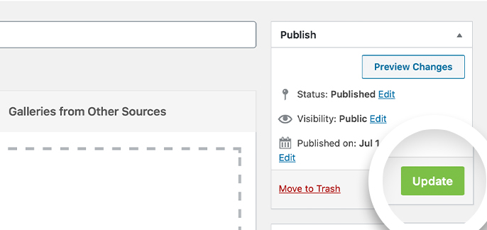 Finally, click Publish or Update on your gallery to finalize your changes.