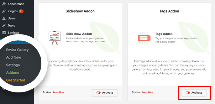 Remember, in this instance, you’ll need to activate the Envira Tags Addon.