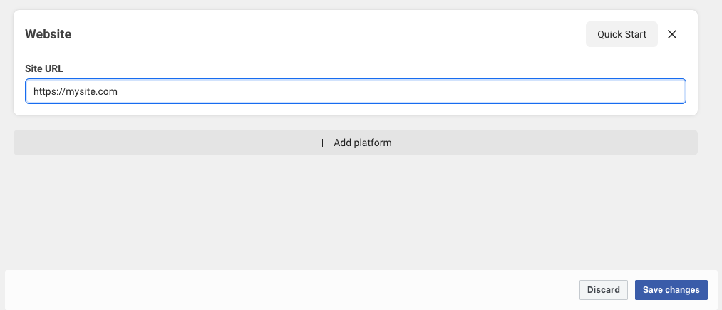 Then click the Add Platform button (at the bottom of this page) so you can add your website URL.