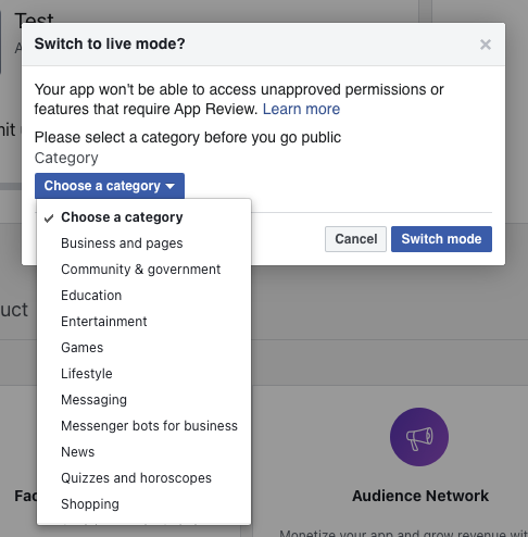Confirm that you’ve set the App to live. Follow these steps to publish your Facebook Application if it has not yet been published.