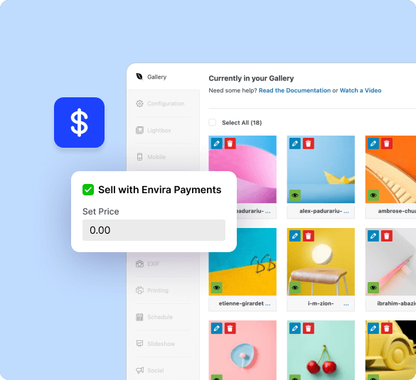 With Envira Gallery’s seamless WooCommerce integration, you can effortlessly transform your galleries into a professional online store. Showcase and sell digital downloads, product collections, or featured items with ease.