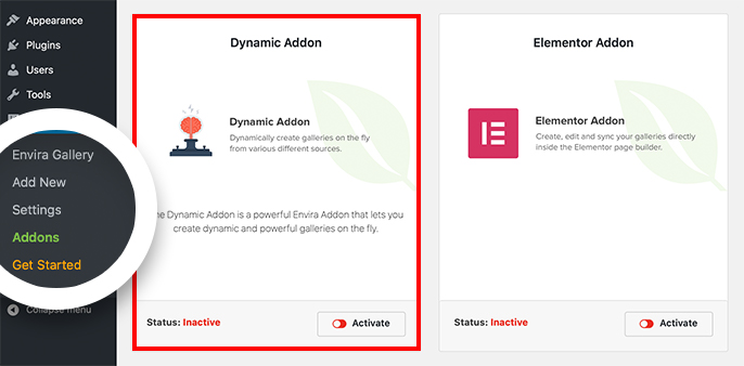 Please follow our instructions on how to install and activate addons. In this instance, you’ll be activating the Envira Dynamic Addon.