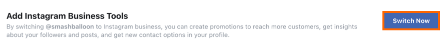 5. Once connected, if you have not switched your Instagram account to Business, click the “Switch Now” button.