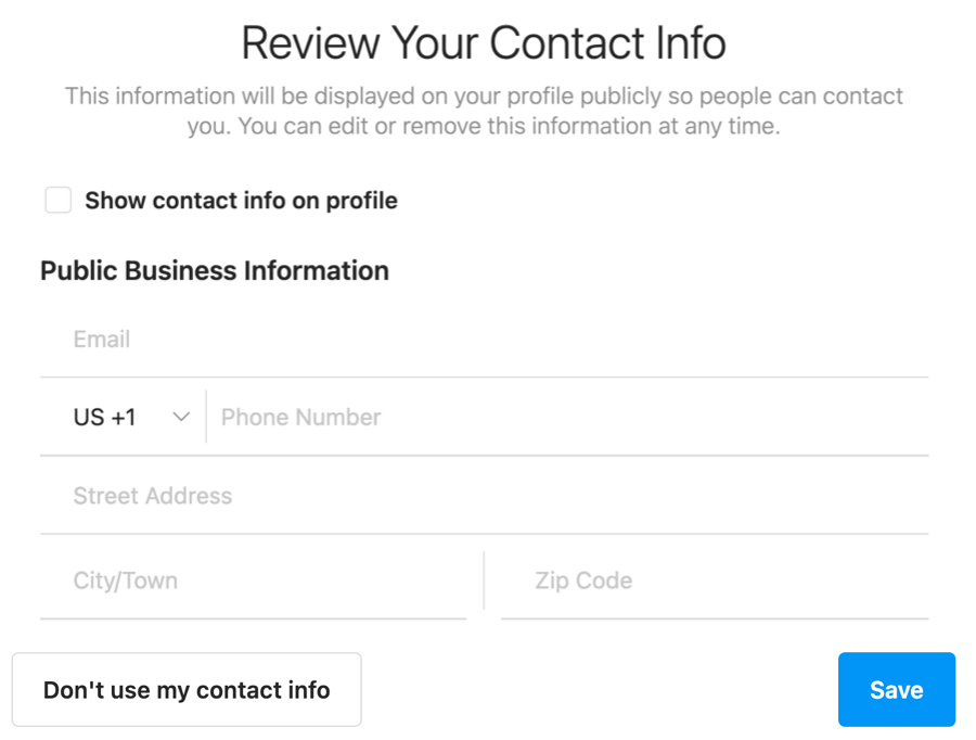 7. Add your contact information or click the “Don’t use my contact info” button to continue.