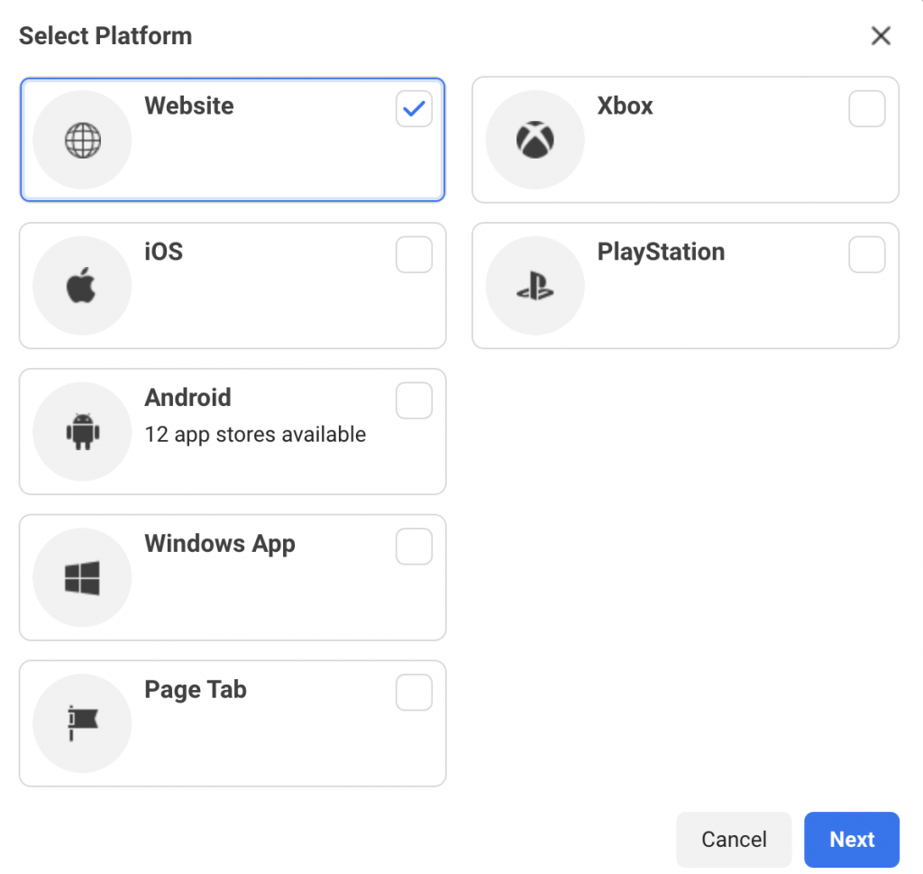 A window will open for you to select Website. This is where we’ll enter our website URL.