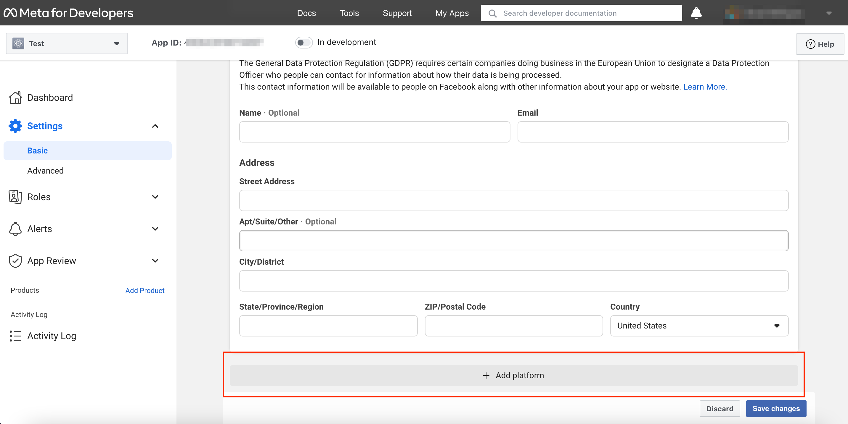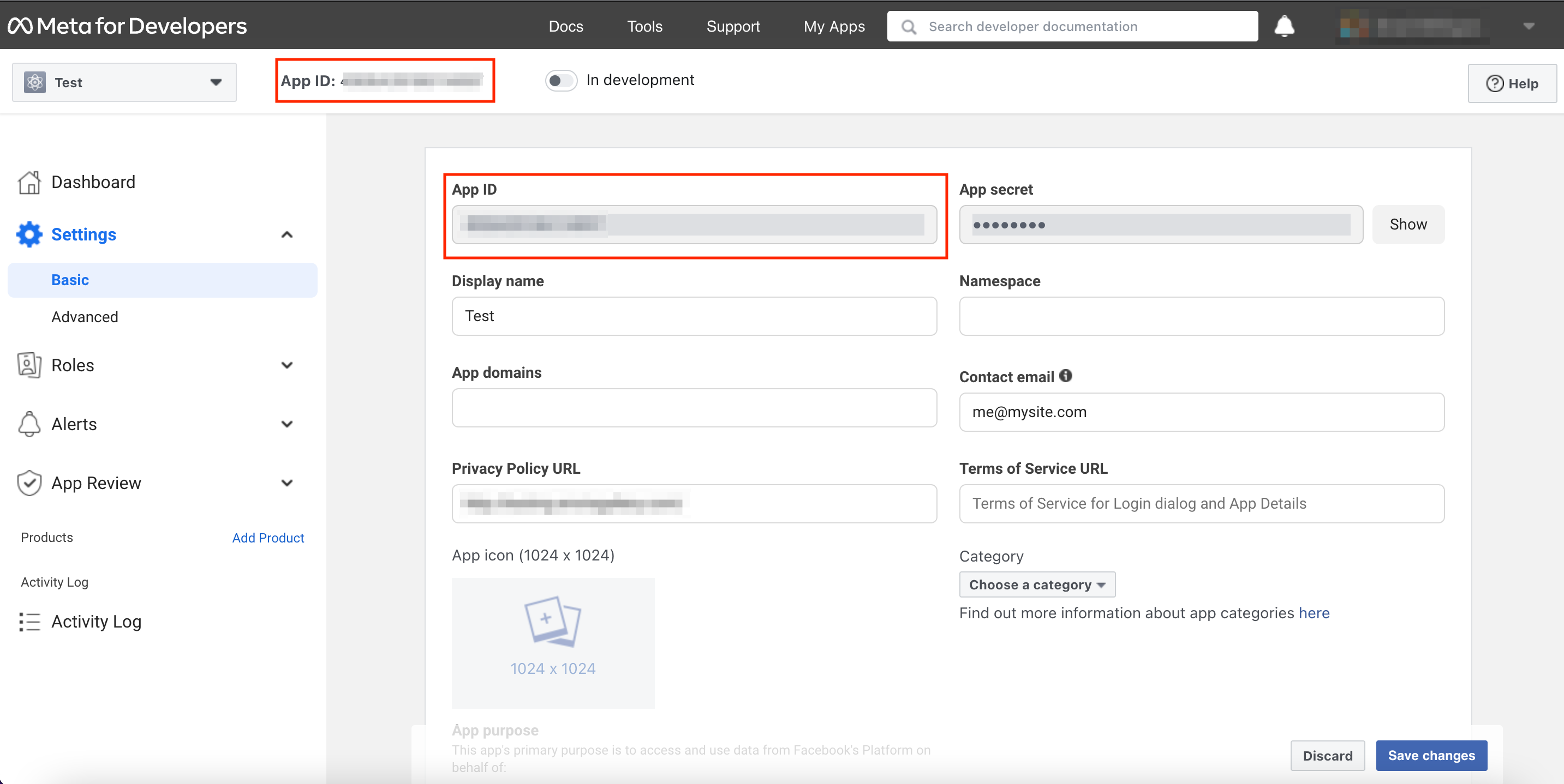 A window will open asking you to enter a Display Name for your App. Enter your name and click click the Create App ID button. Facebook will ask you to complete a security check next and then redirect you to another page.