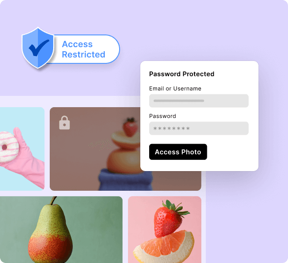 Easily secure your private galleries with flexible password protection options. Control who can view your images or videos while maintaining a professional client experience.